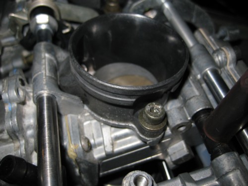 さて、やっとFCR本体のオーバーホールが完了しましたね。慣れたらバラすのに一時間、洗浄に二時間といったところでしょうか。。。写真を撮りながら、休憩しながらで6時間近くかかってしまいました(汗)搭載する前にやっておかなくてはならないことがあります。インシュレーターをZZ-R400用に交換しておきます。